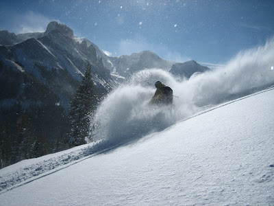 We decided to take a(nother) trip up to the Diamond today. It was hammered pretty good by this last storm. Estimates were around 8-14''. Avalanche danger was also considerably high. After digging a couple of pits with team Thrillhead Creations we decided to stick to the lower angled terrain. Turned out to be a pretty smart decision. Someone got buried by a slide in the Montgomery Pass area(within eye sight of us) while we were there. We ran into all sorts of search and rescue on the way down the canyon. Last i heard,the person had CPR performed on him/her and,i think,was breathing. Scary. Anyways,it was an awesome day with many fat facial,cold facial shots on the S. shoulder of the diamond.